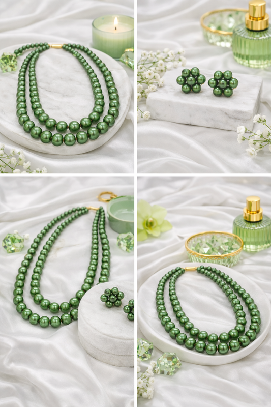 Green Shade Double Strand Pearl Necklace -G2LCode