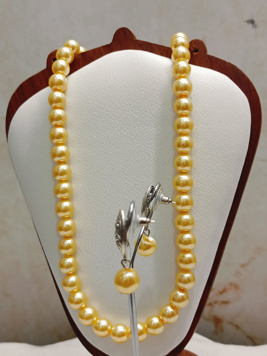 Bright Yellow Pearl Necklace With Oxidised Earrings