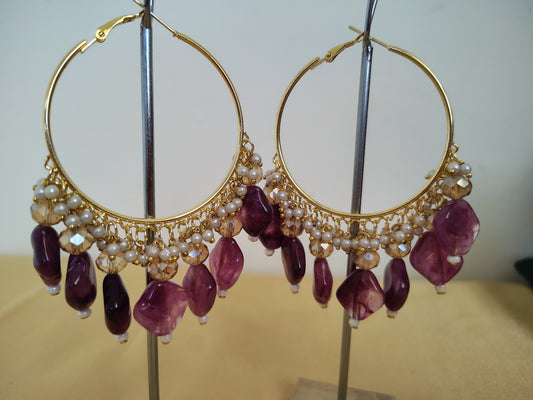Bright Pink Pearl With Golden Metal Earrings
