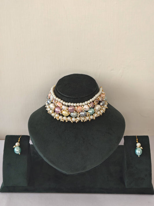 Multi-Hue Baroque Pearl Cluster Choker & Earring Set