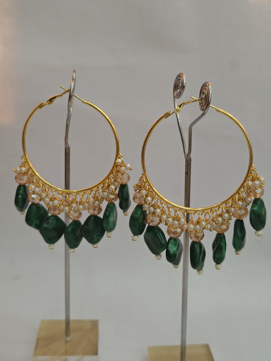 Golden Metal Hoop With C Green Stone