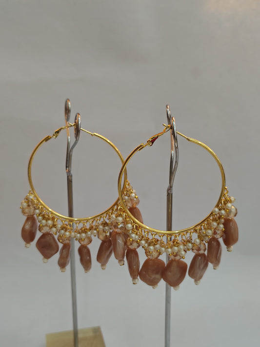 Golden Metal Hoop With Off Pink Stone