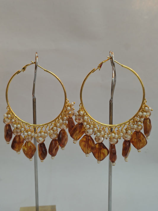Golden Metal Hoop With Light Brown Stone
