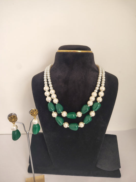 Green Shade Double Strand Pearl Necklace -G2LCode