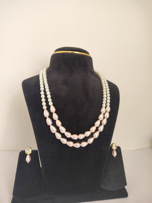 Pink Drop Shape Pearls With Round White Pearls Necklace