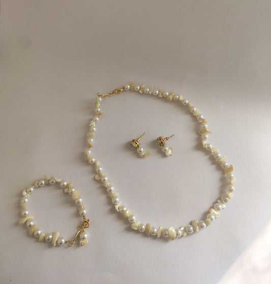 Unique White Pearl Necklace With Earring and Bracelet