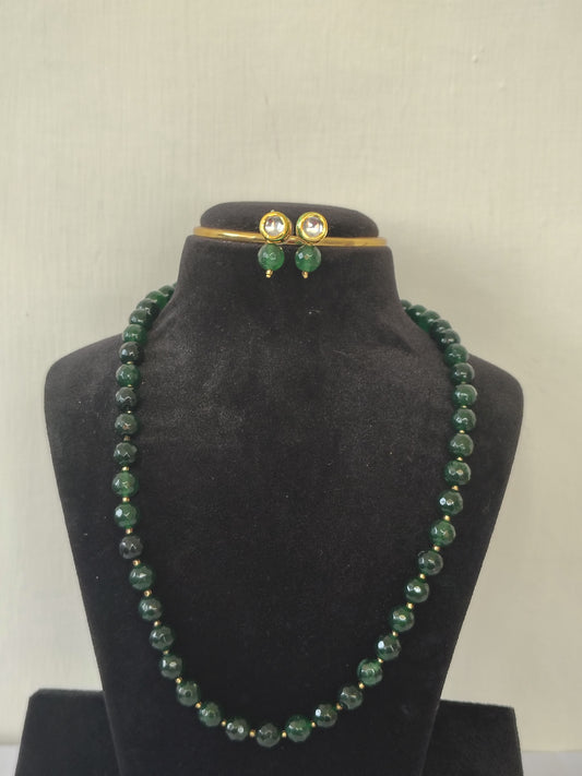 Onyx Royal Green Bigger Faceted Bead Necklace & Earring Set