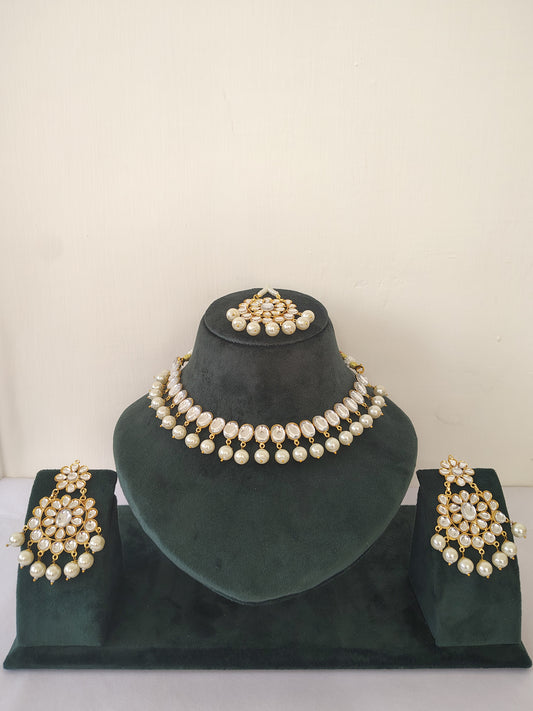 Maharani Pearl Choker & Medallion Jewelry Set With Maang Tikka & Earrings
