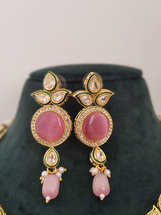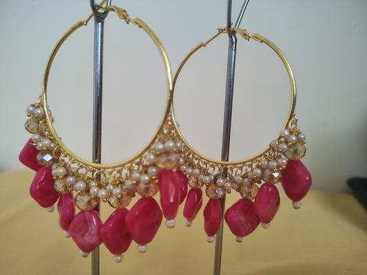 Bright Pink Pearl With Golden Metal Earrings