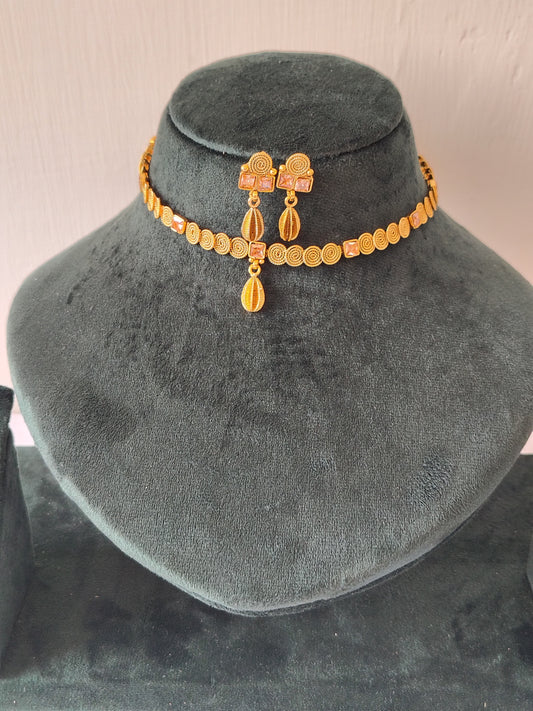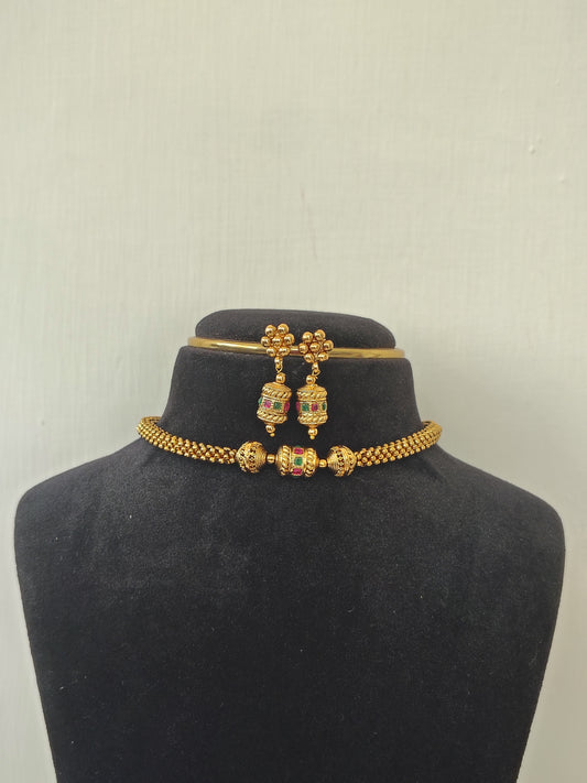 Dainty Gold-Plated Bead Choker & Jhumka Set & Earrings