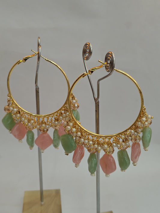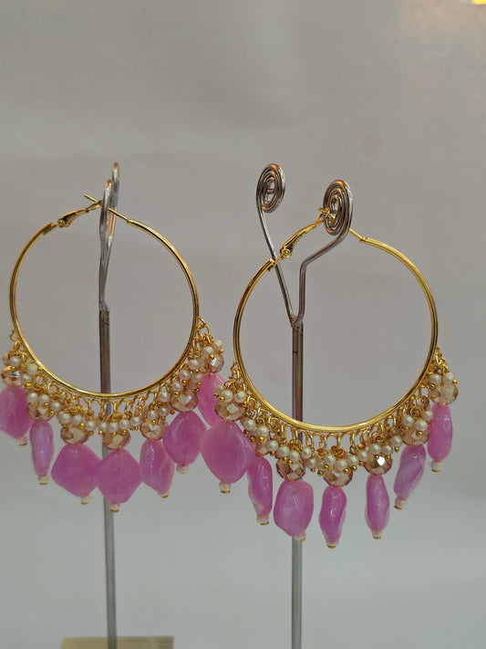 Golden Metal Hoop With Off Pink Stone
