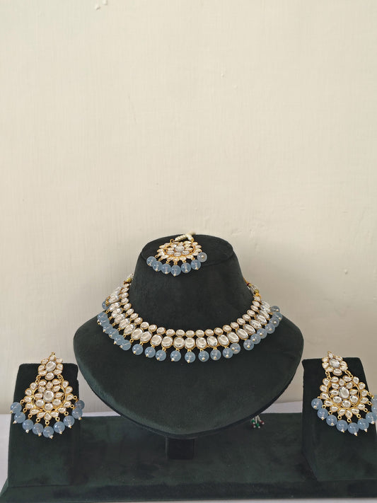 Royalty: Kundan & Sky Blue Statement Set With Earrings