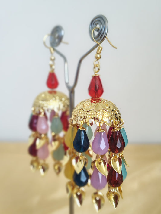 Bright Red Pearl Necklace With Golden Metal Earrings