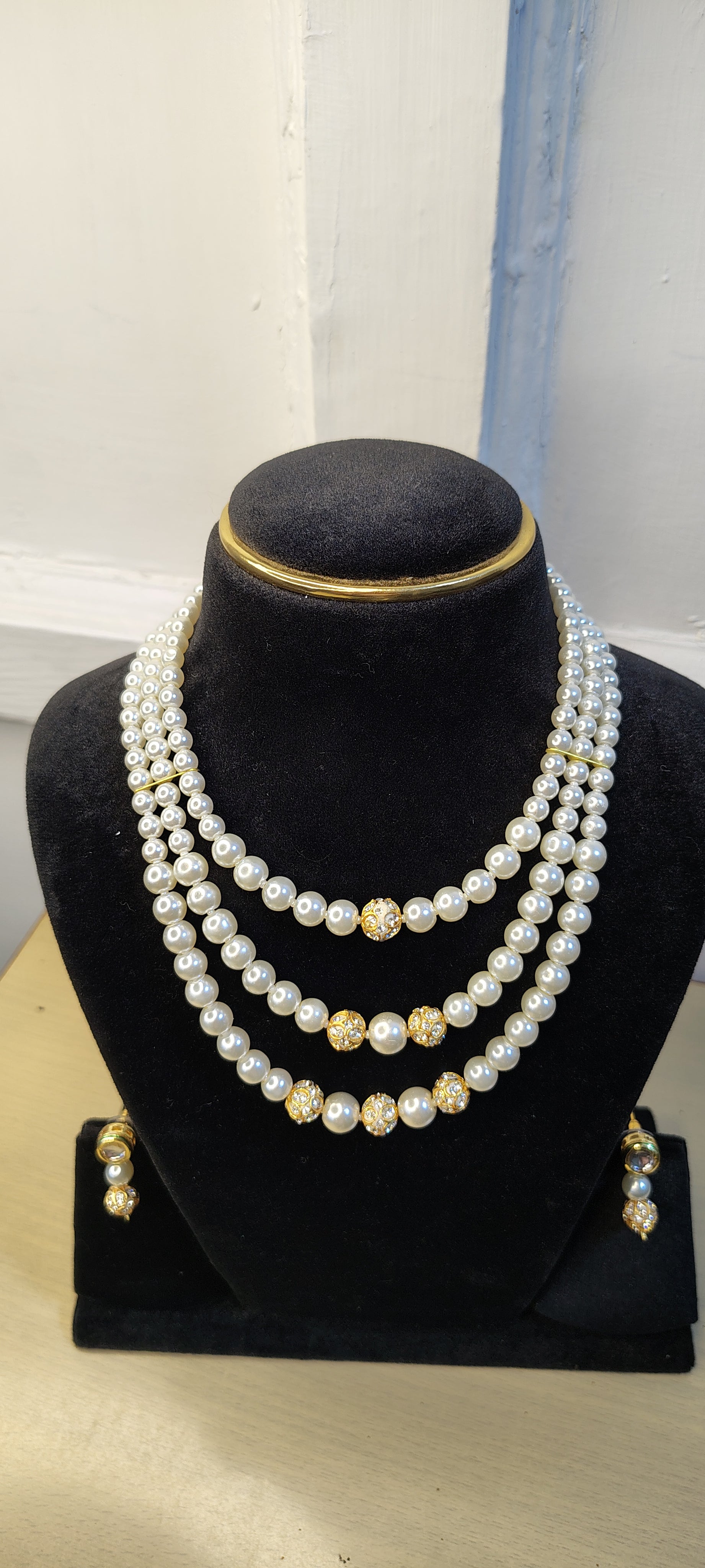 Grey Pearl 3 Layer With Earrings Chokar Set
