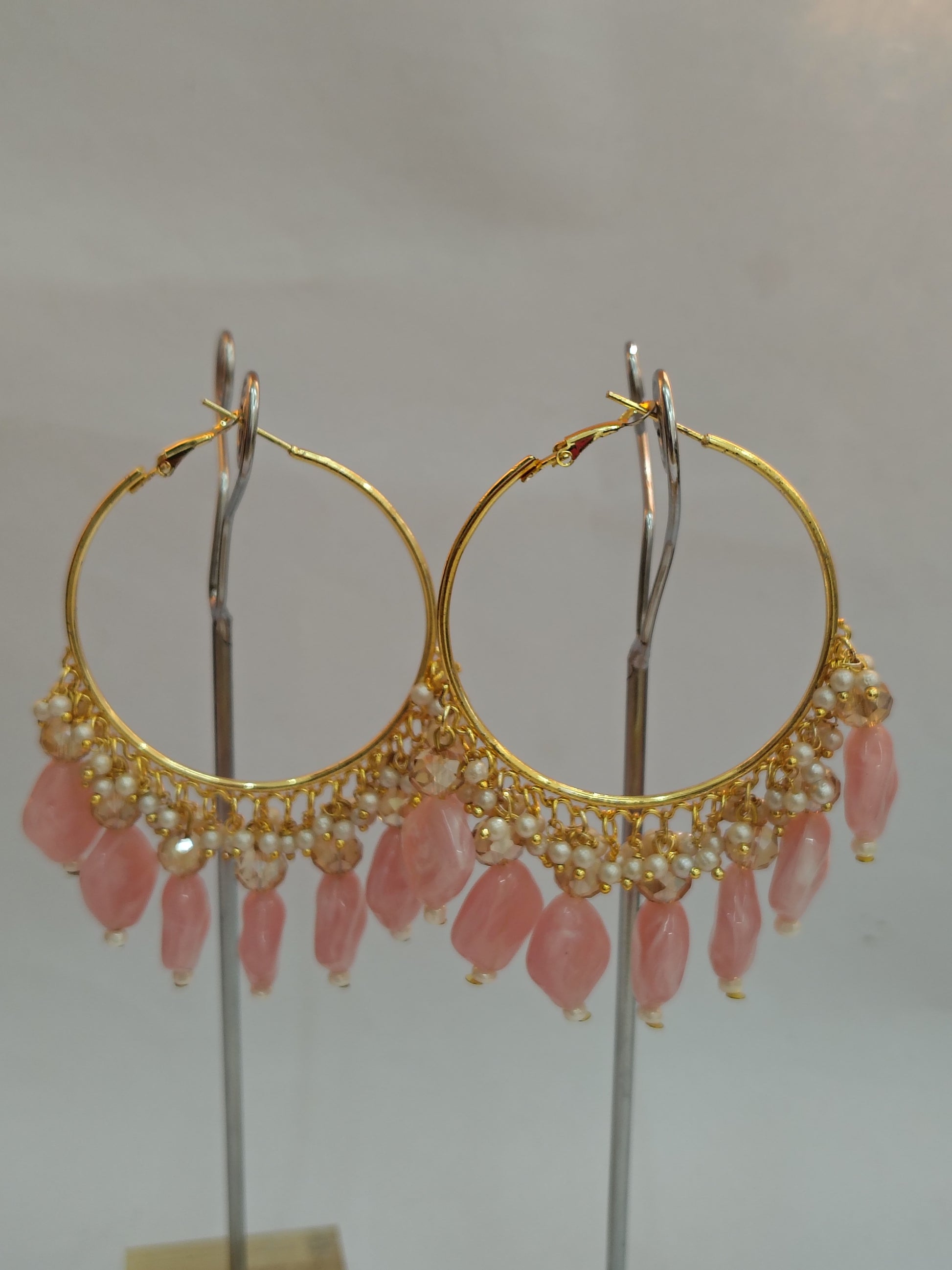 Golden Metal Hoop With Off Pink Stone