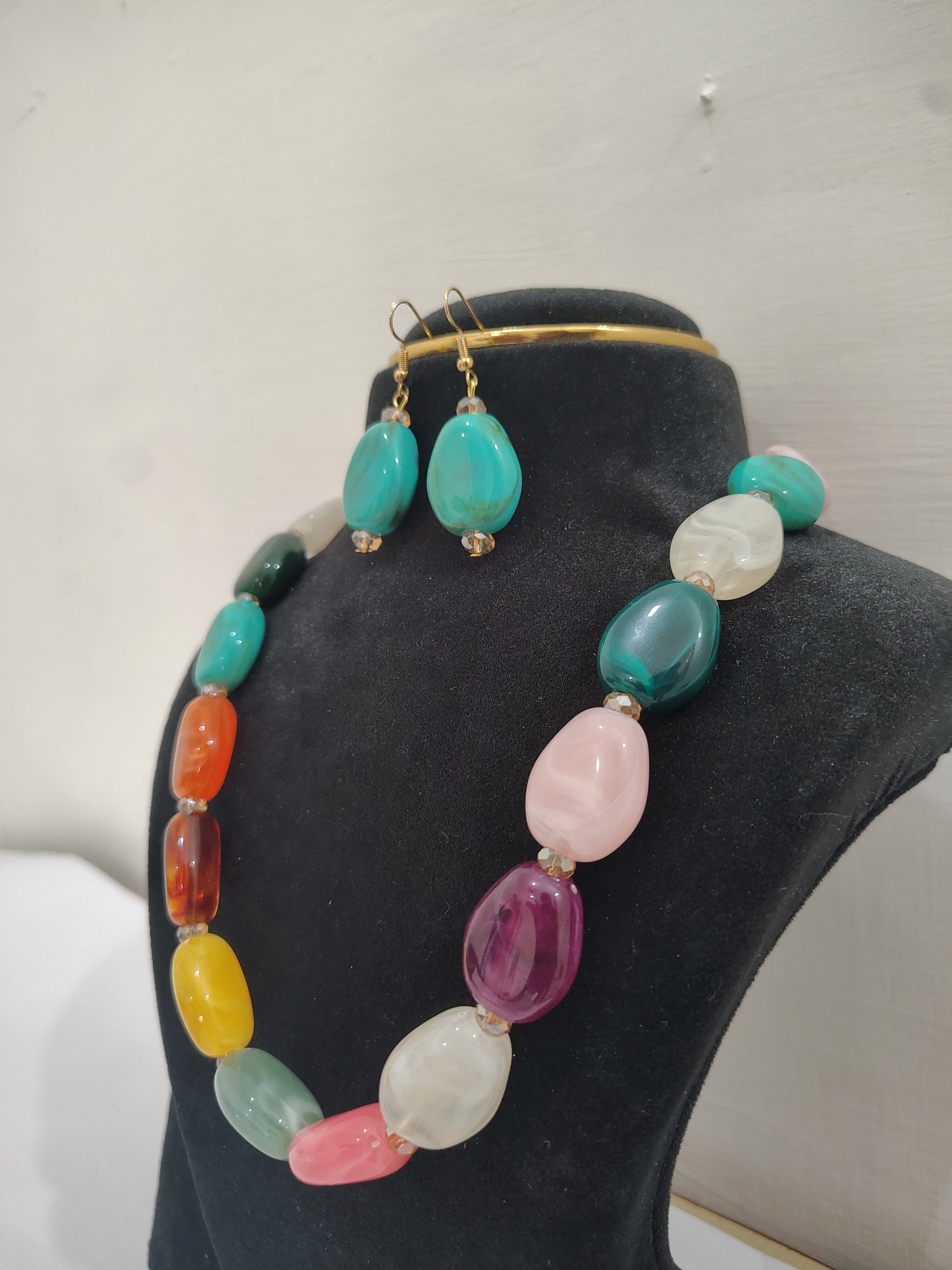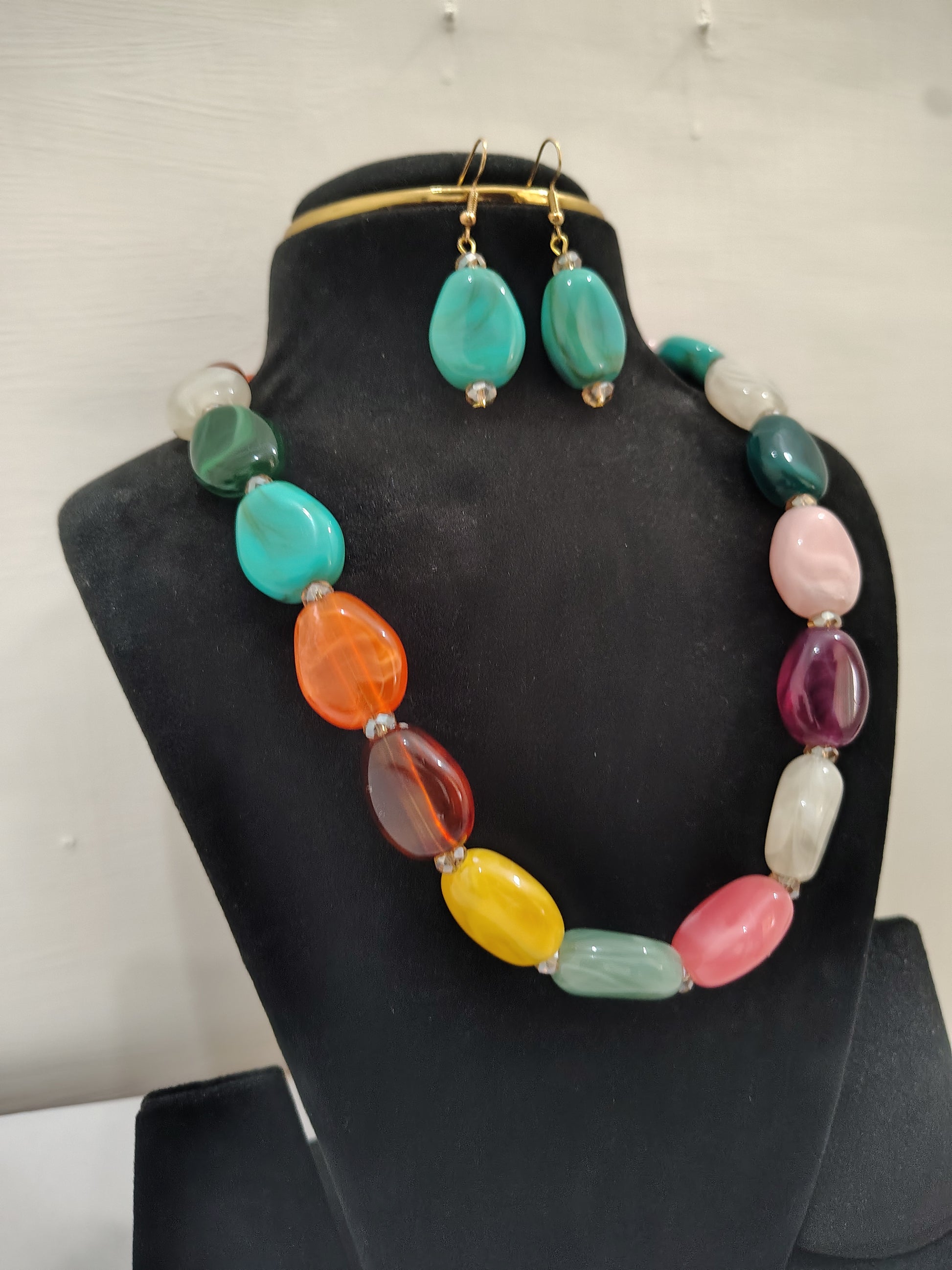 Multi colour Stone With Earrings Necklace Set