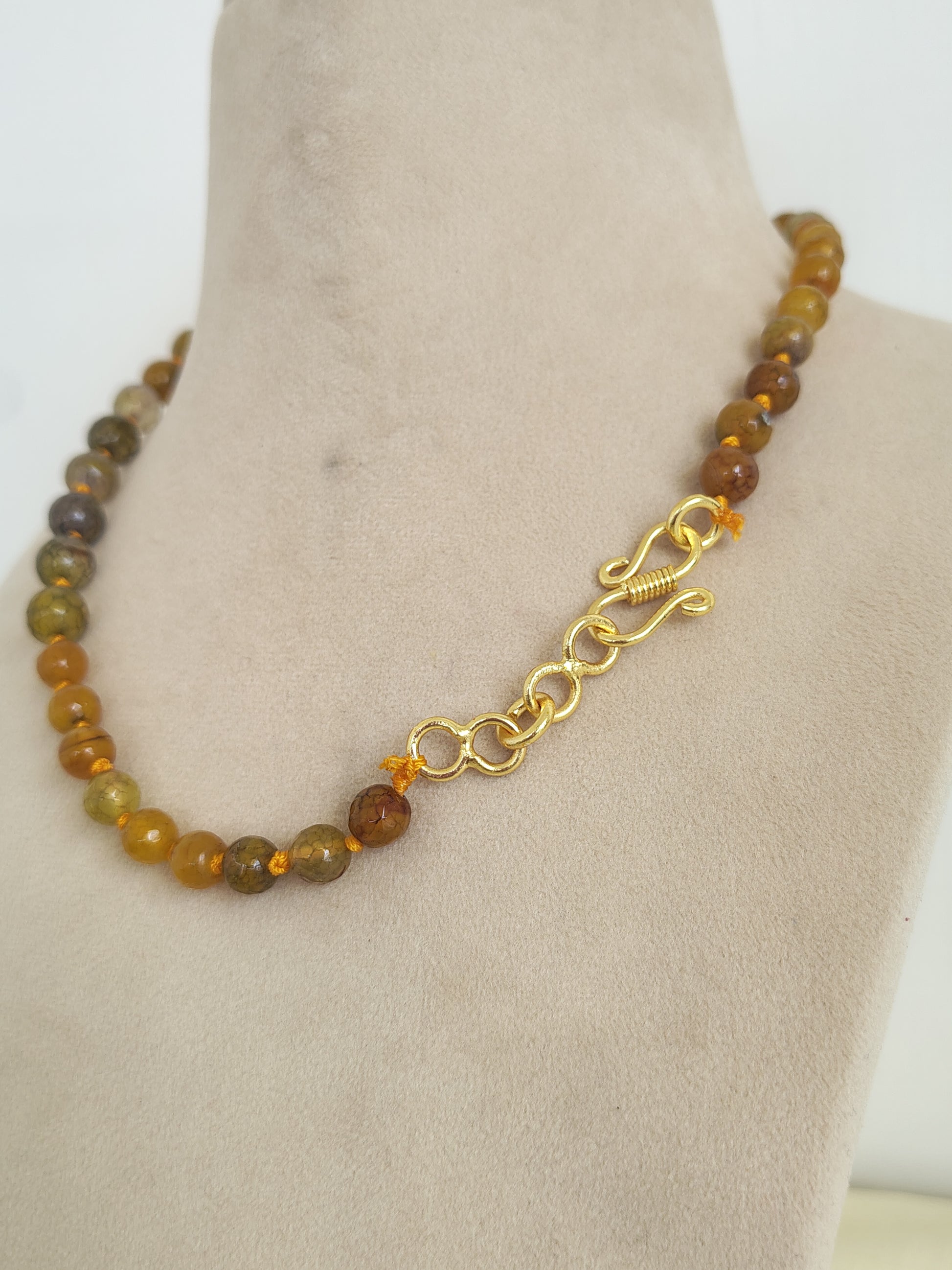 Earthtone Orange Dragon Vein Agate Beaded Necklace