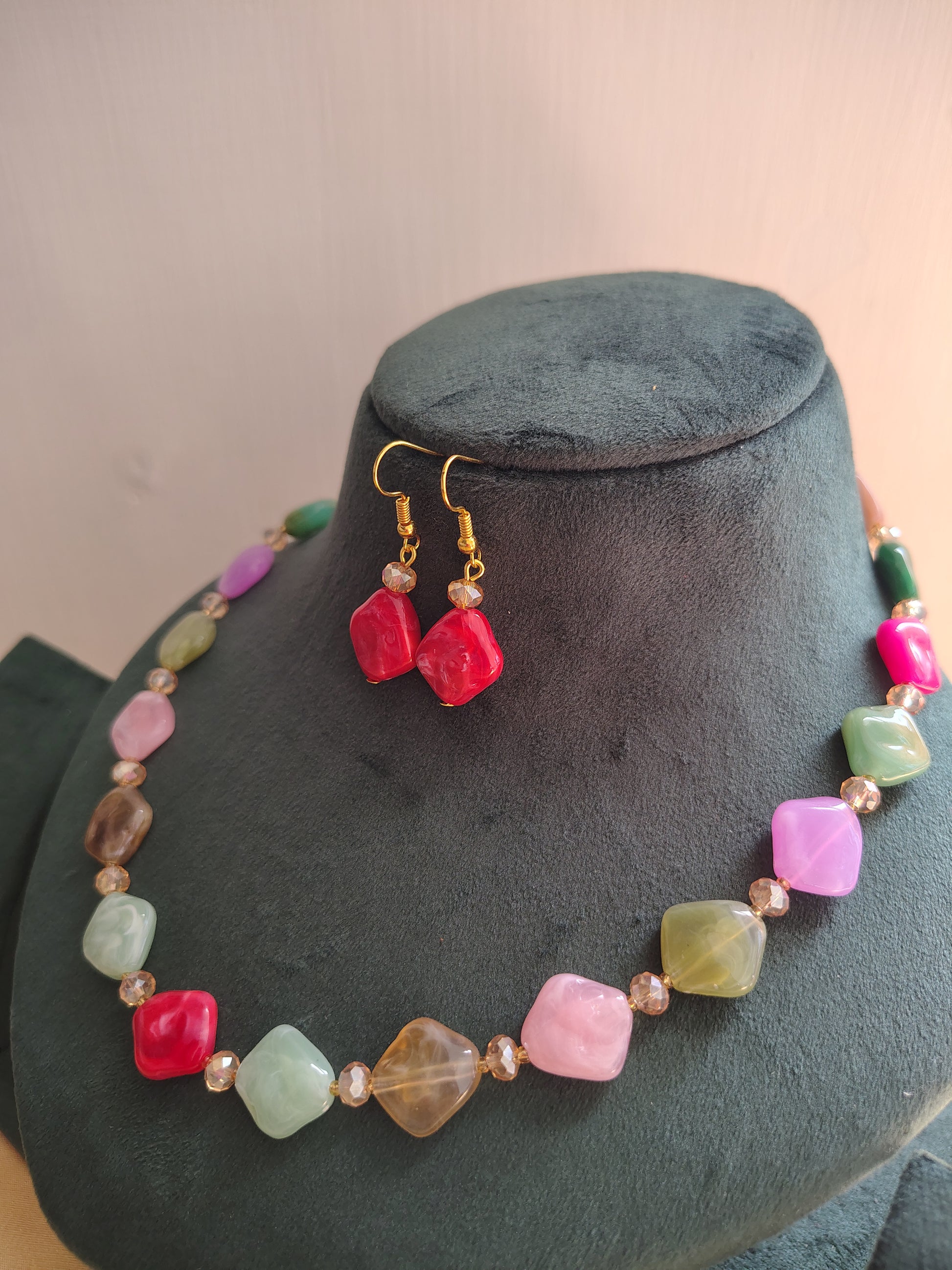 Multi Colour Necklace With Matching Earrings