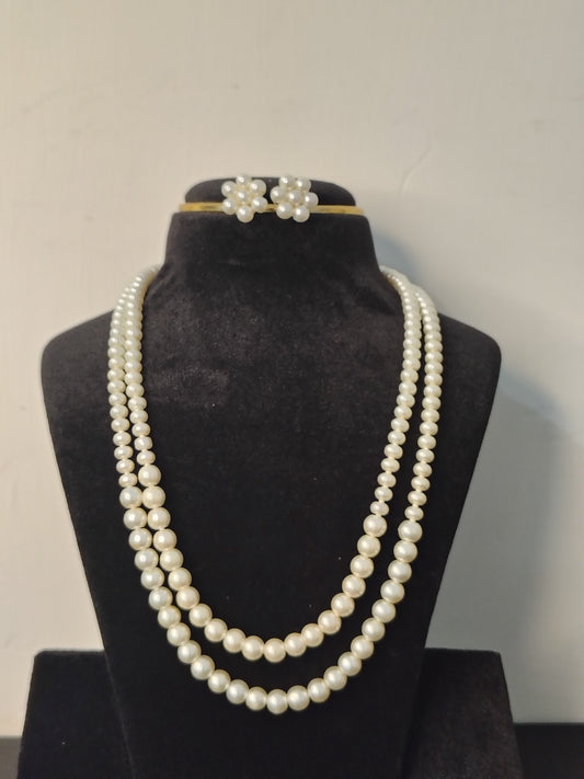 White Pearl Necklace With Earrings