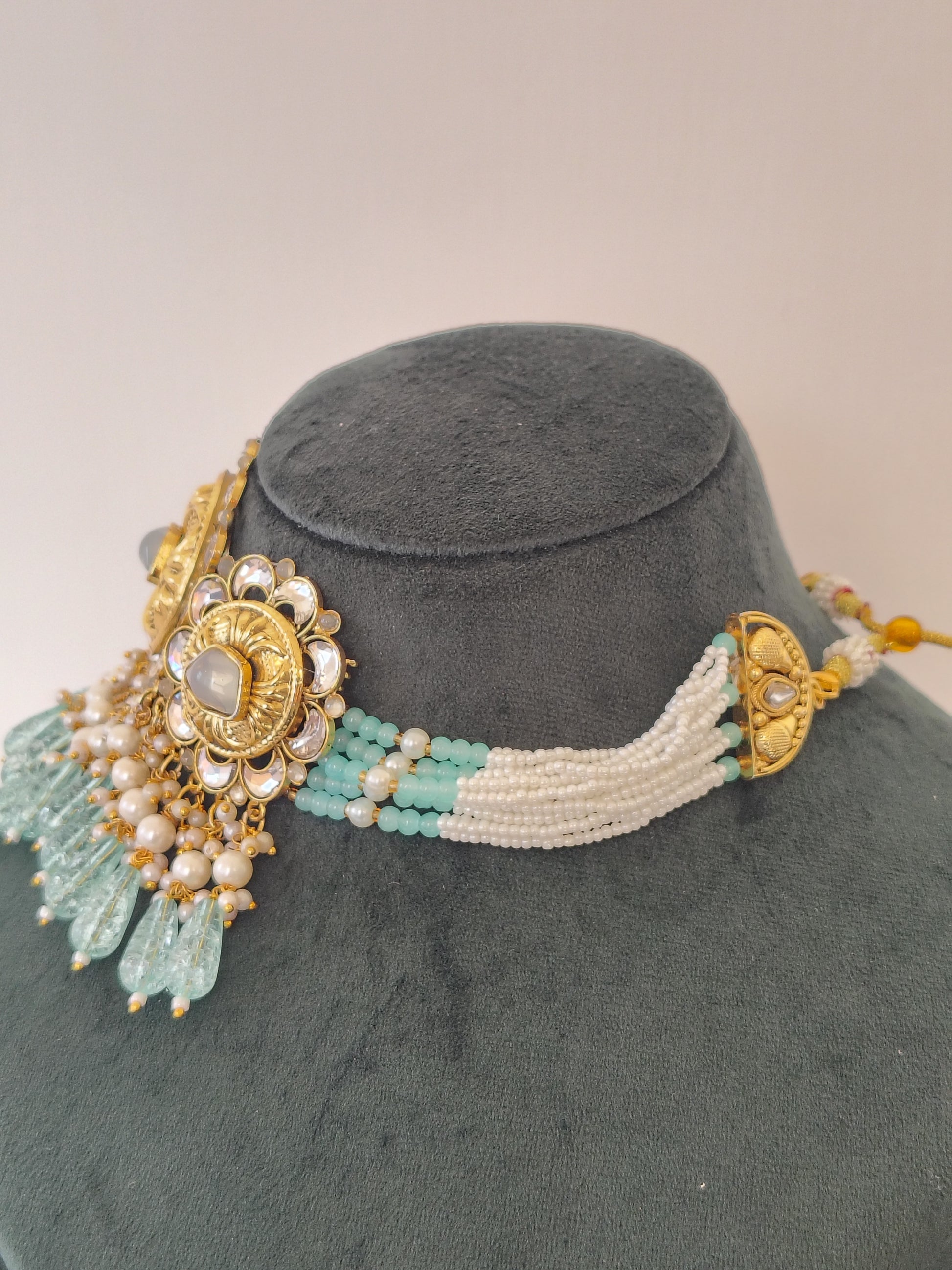 Royal Mint Green & Gold Kundan Choker Set | Includes Matching Earrings & Maang Tikka