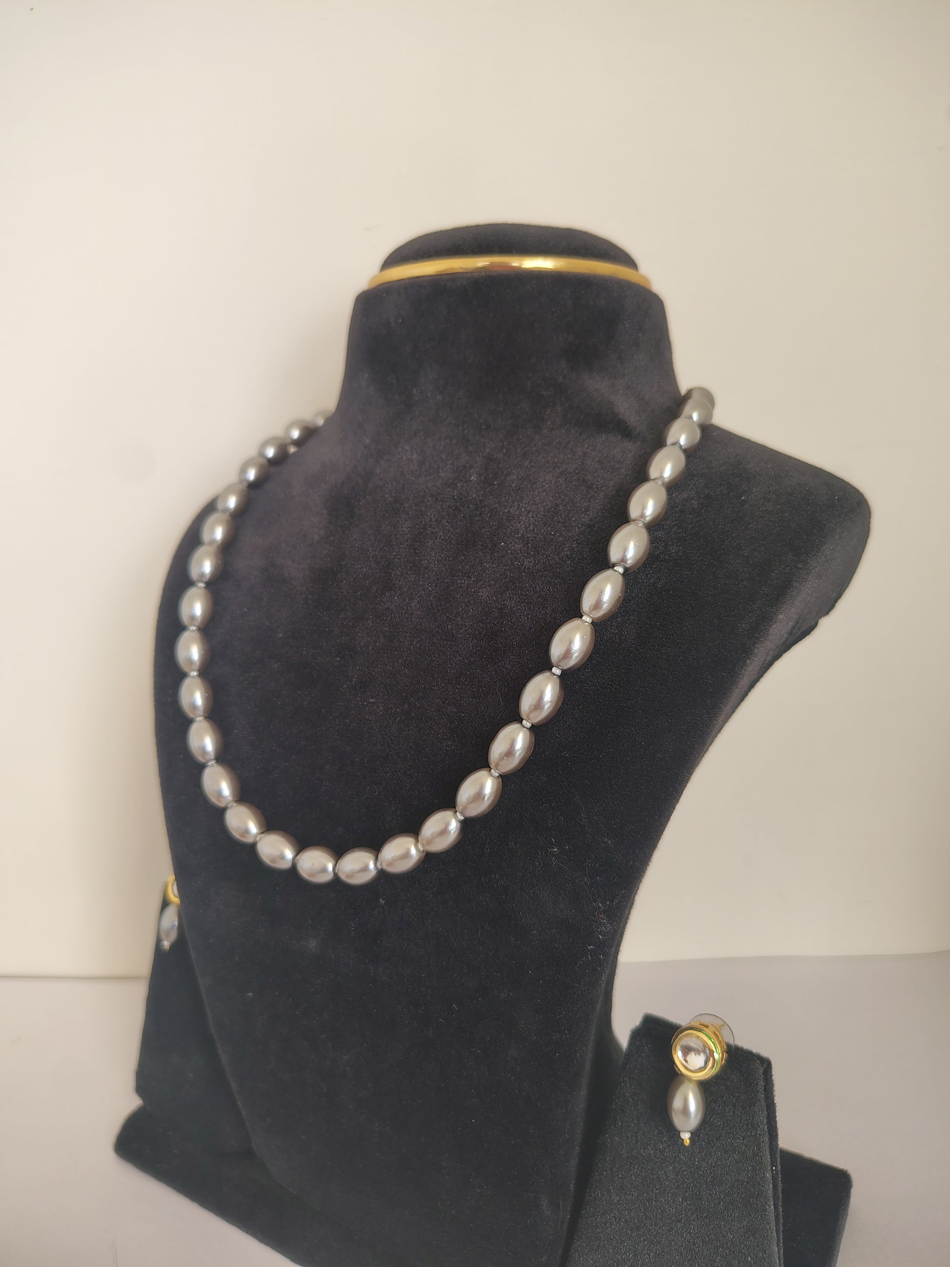 Elevate your everyday elegance with this refined grey drop shape pearl necklace. Featuring a single strand of lustrous pearls in a sophisticated grey tone, this timeless piece effortlessly transitions from day to evening wear. The graceful drop silhouette adds subtle dimension to any ensemble, while the classic design ensures enduring style. Perfect for those who appreciate understated luxury and timeless sophistication.