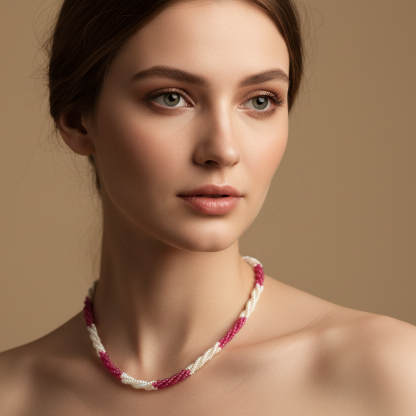 Pink White Pearl Necklace