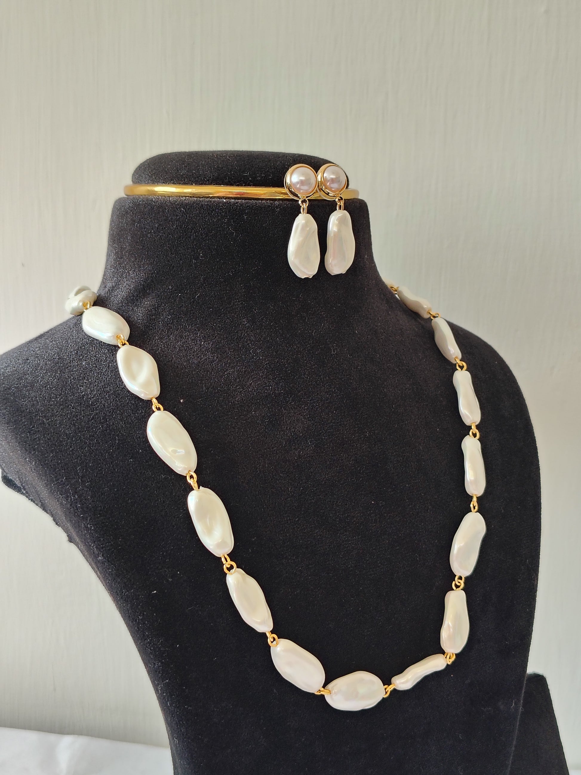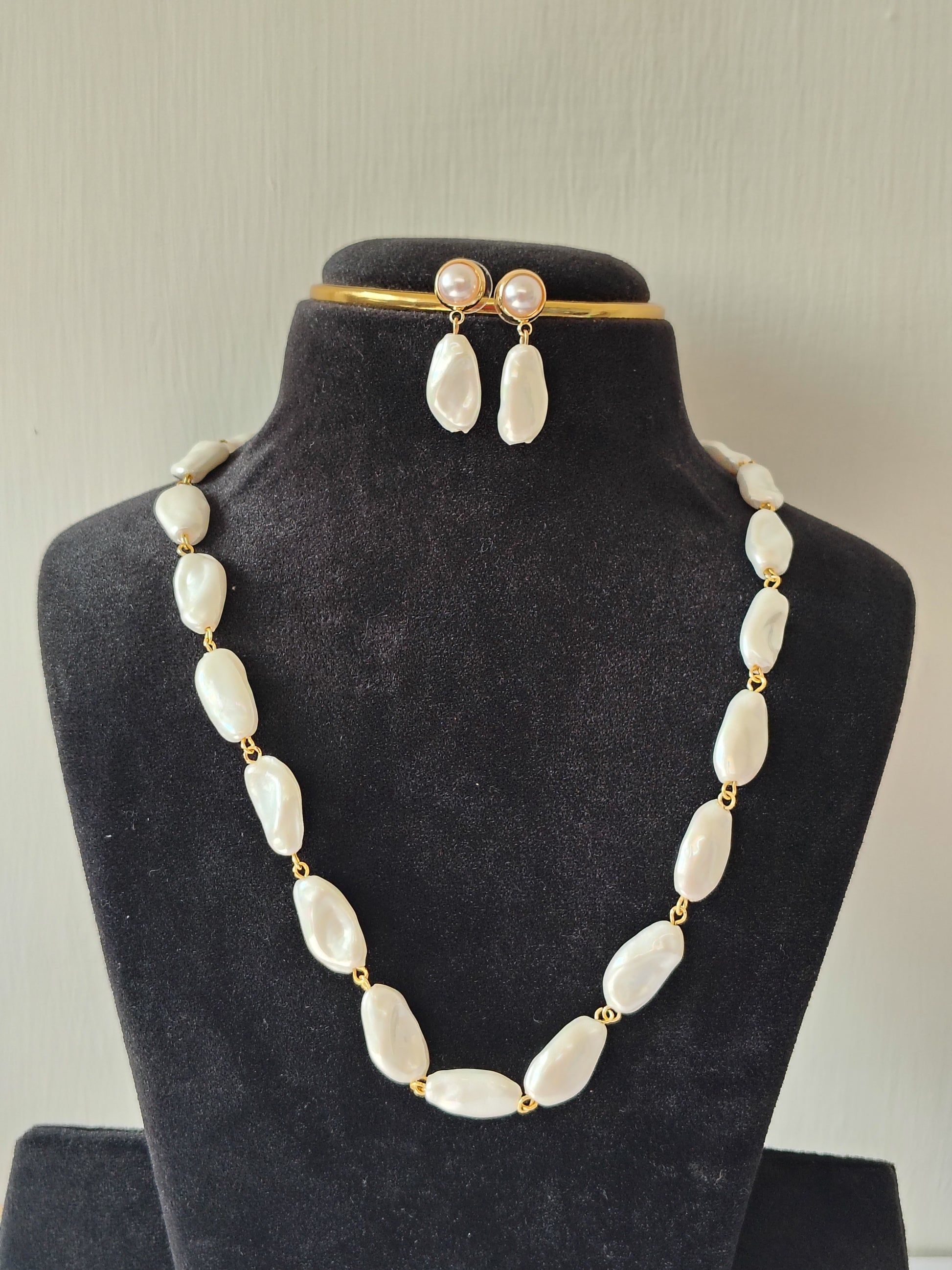 White stone Pearl Necklace With Matching Earrings